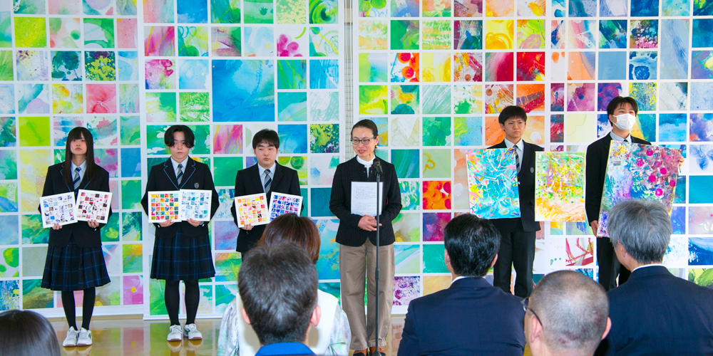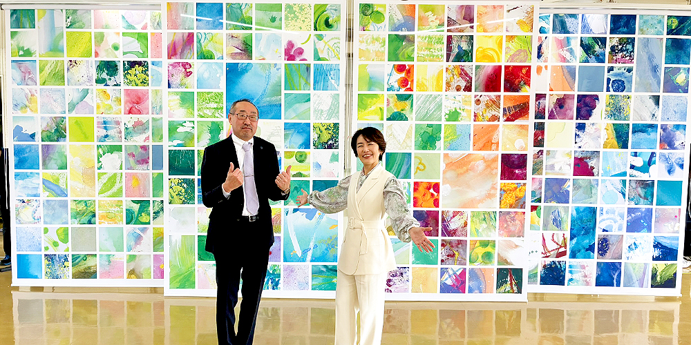 アートの力で、空間の雰囲気が大きく変わったことを実感しました。生徒の皆さんが時間をかけ、真剣に取り組んでくれたことが伝わってきて、完成した作品を見たときは感無量でした。この作品が、社員にとって日々の癒しや励みとなることを期待しています。