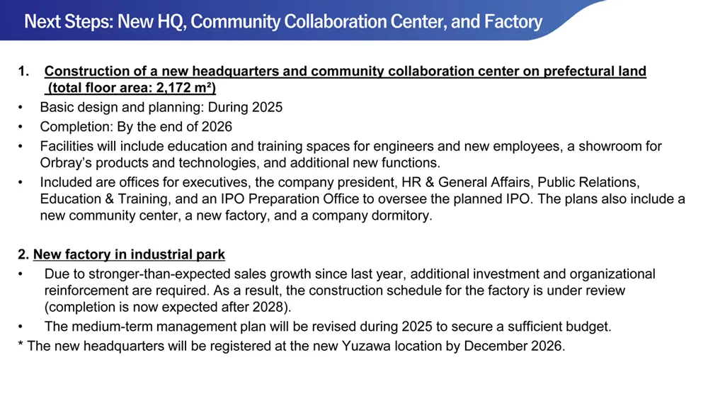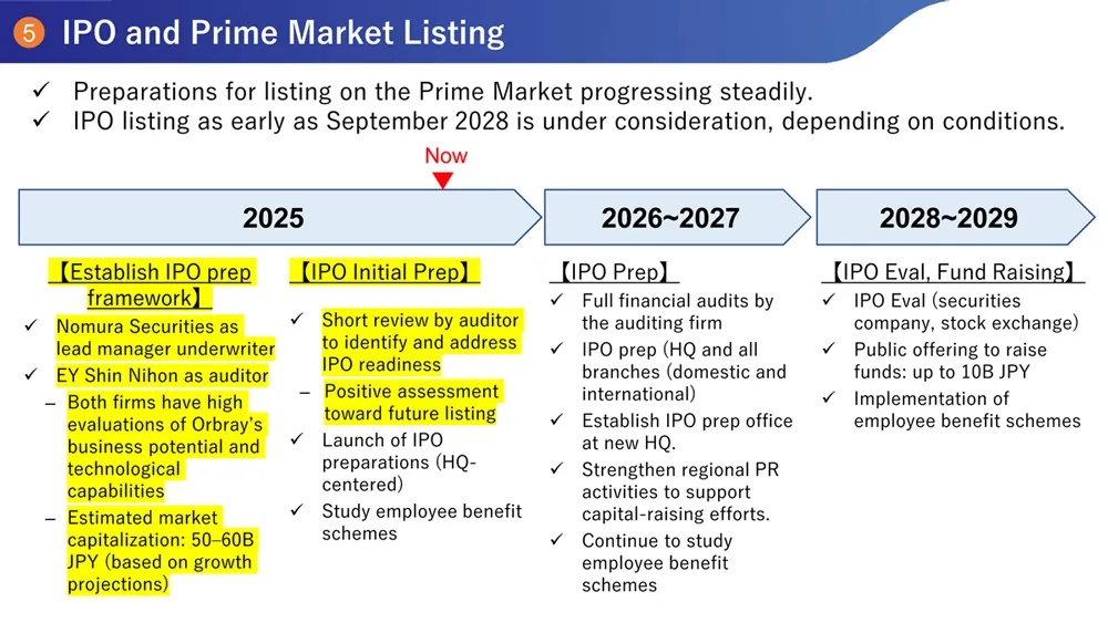 With these changes in play, the timing for Orbray’s initial public offering (IPO) remains unchanged, with 2029 as the primary target date. However, the company is also considering an earlier launch in September 2028 and is accelerating its preparation toward that possibility.